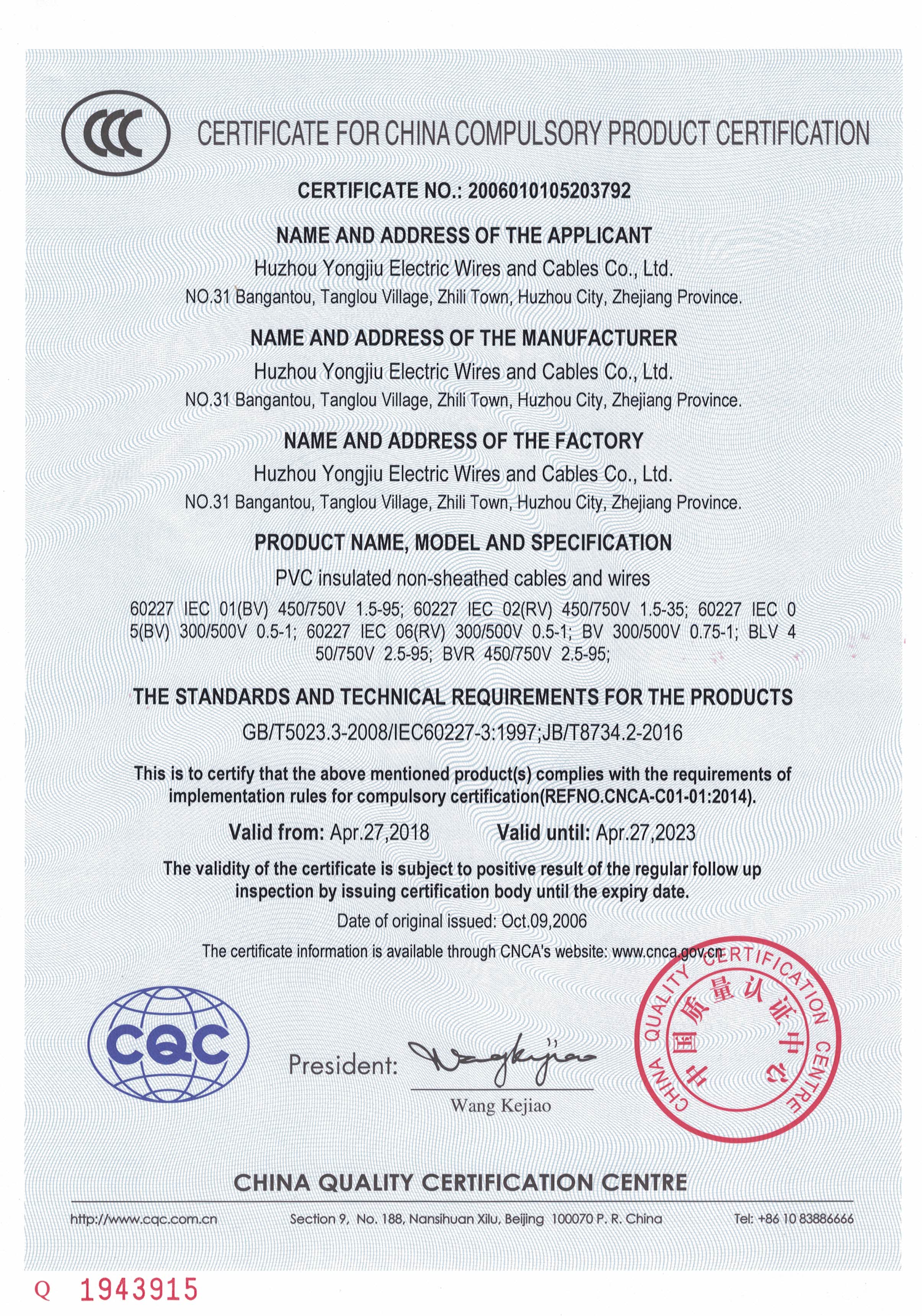 2005年, 在王阿志董事長(zhǎng)的帶領(lǐng)下,經(jīng)過10年的不斷的努力和堅(jiān)持,浙江永久電纜有限公司--正式注冊(cè)成立。